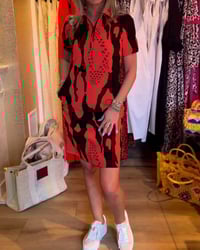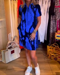 Printed lapel short sleeve dress