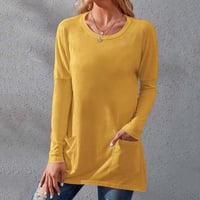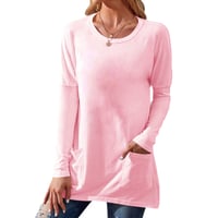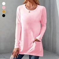 ❤Features: Crew neck long sleeve loose basic shirt, solid color side slit tee with pocket on left chest. Simple style casual fashion, never out of date.