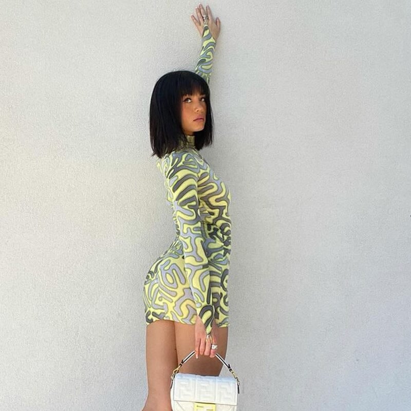 Printed Waist Long Sleeve Dress